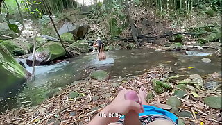 hermanastra se ducha en el rio, mientras la observa me masturbo hasta terminar follando su rico culo